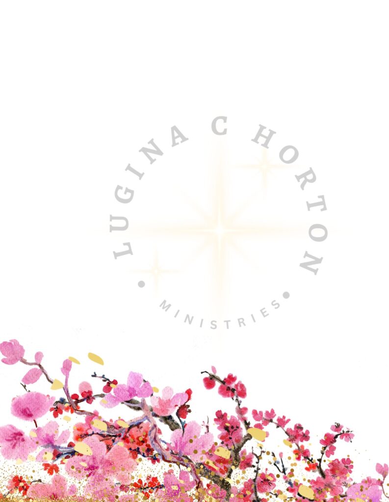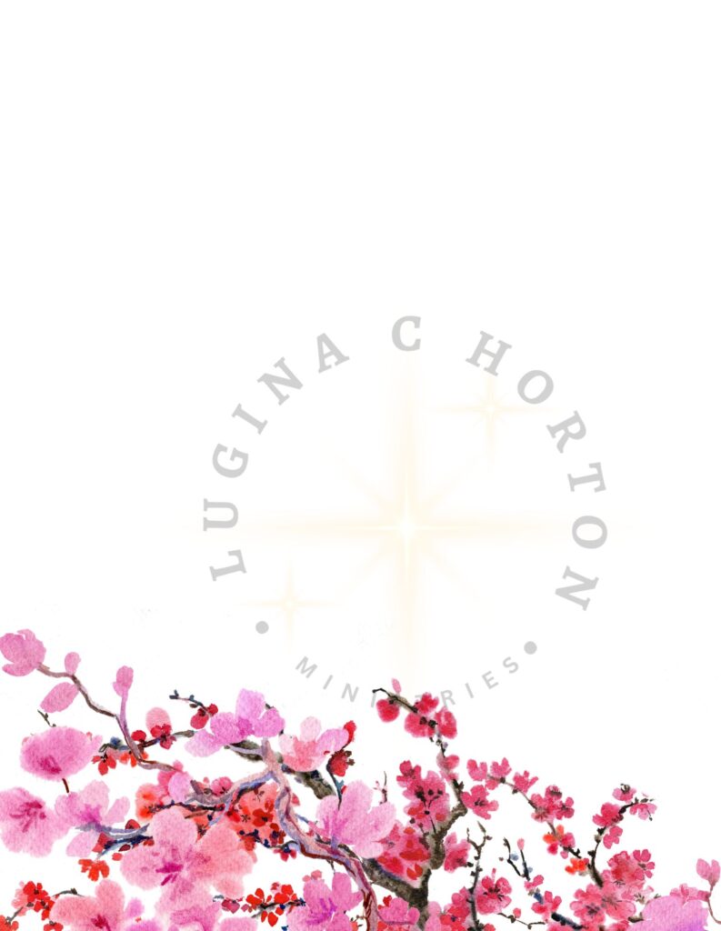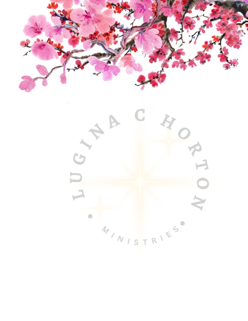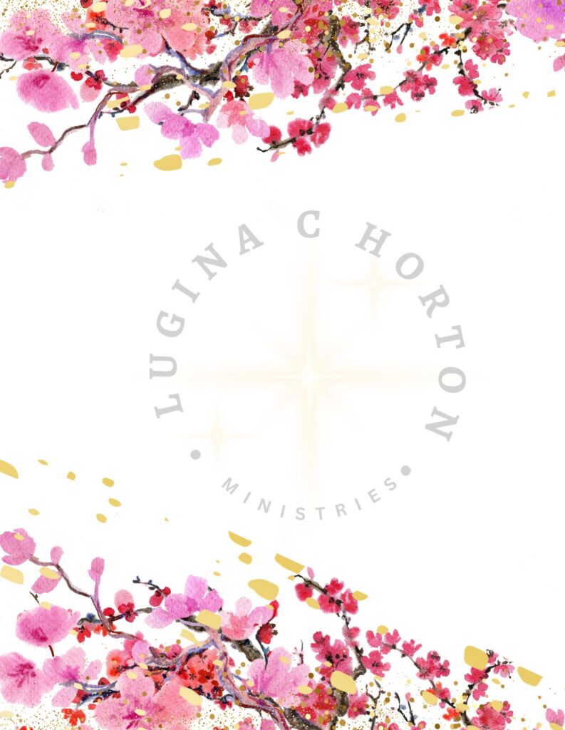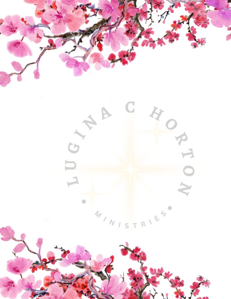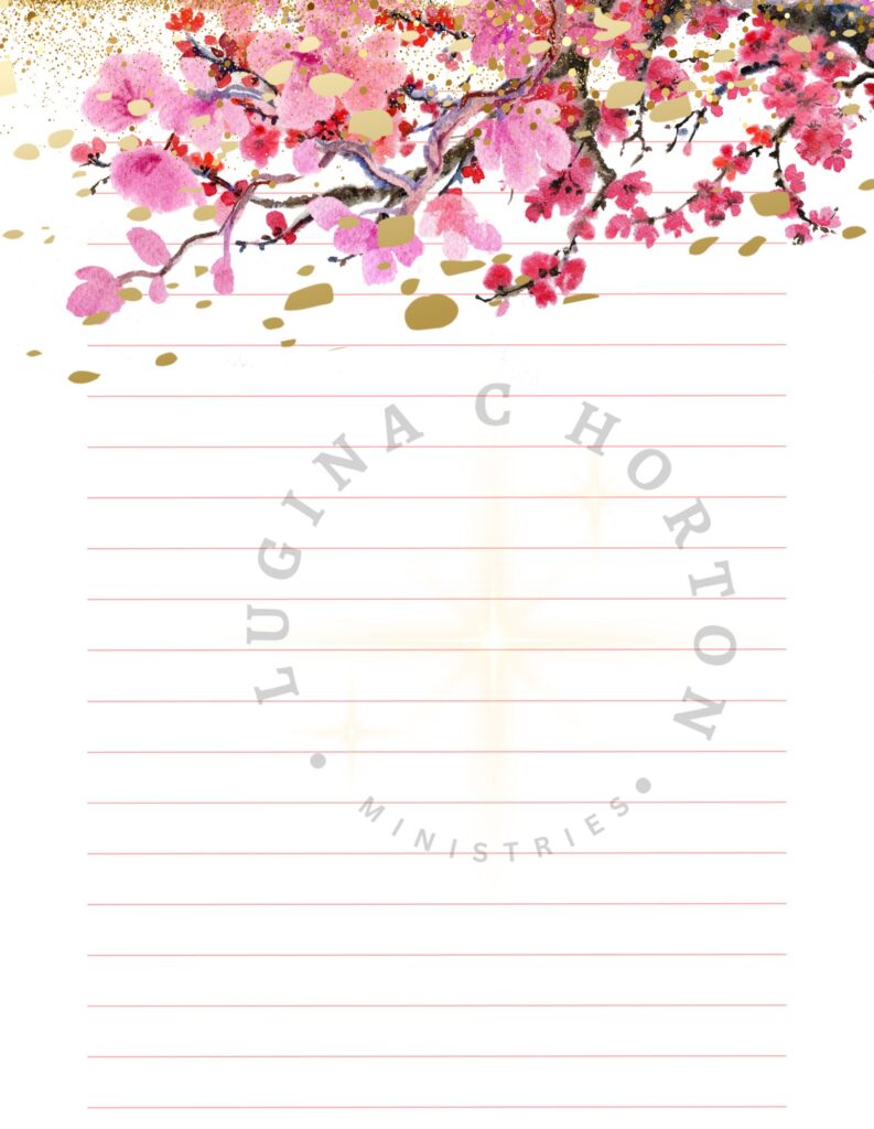 This Cherries of Love image is a piece of printable, downloadable decorative lined stationery with an artistic design featuring cherry blossoms.